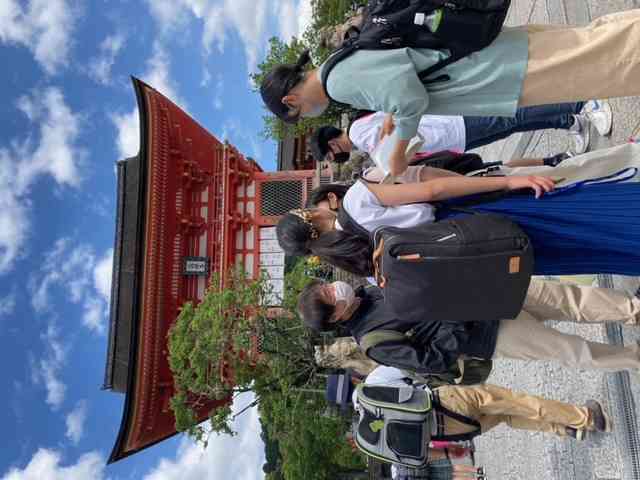 今日のチェック・ポイント清水寺に野村先生が登場しました。案内を交渉している班もあります。