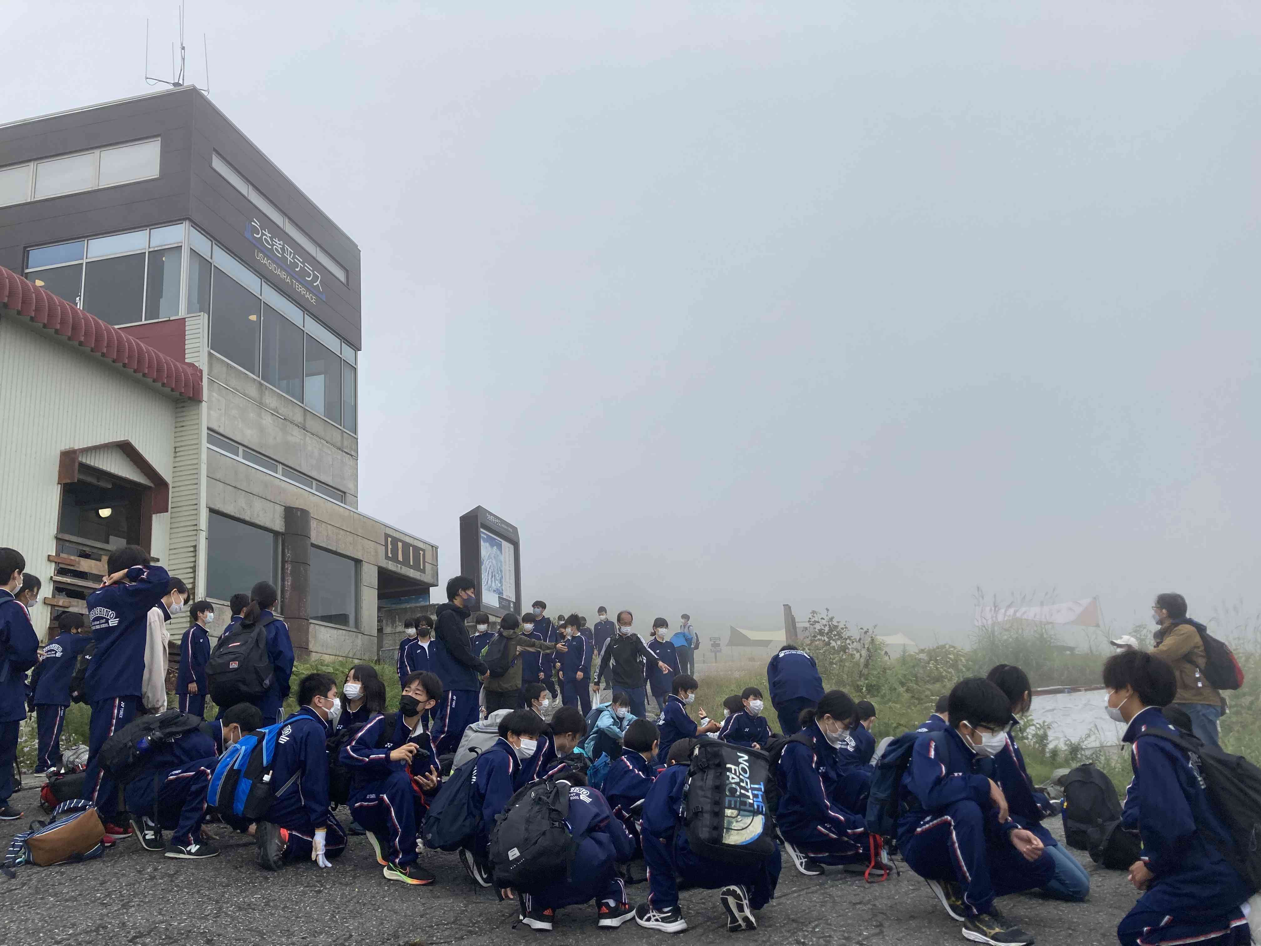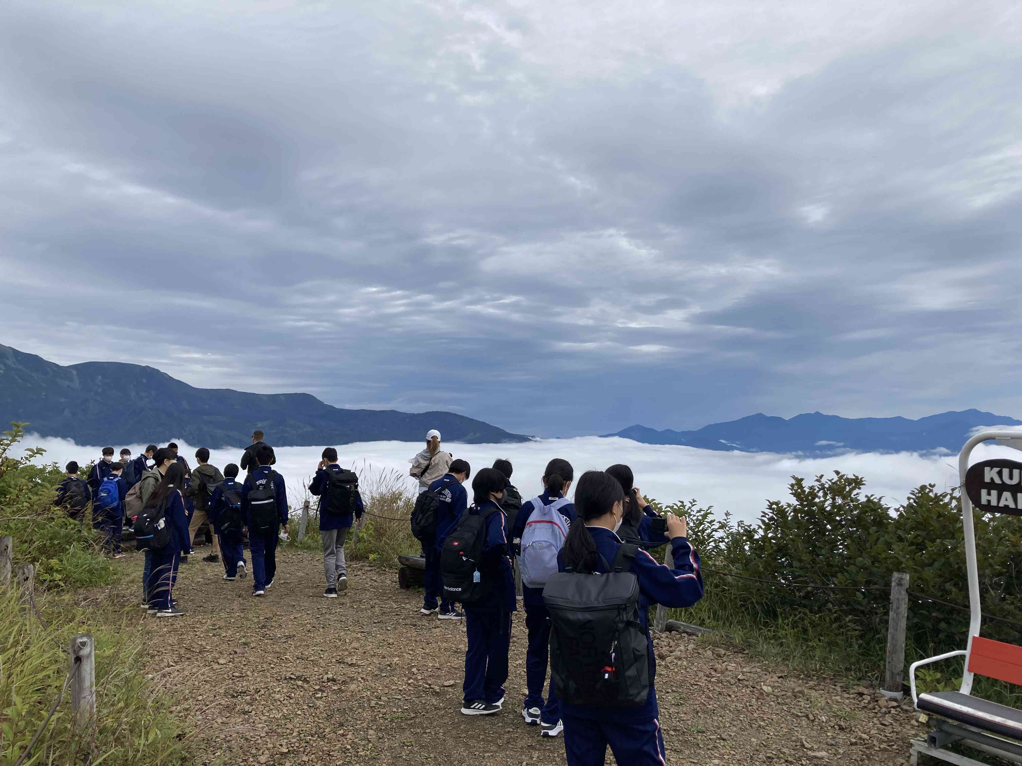 ゴンドラに乗り兎平に着くと霧の世界。ところが、黒菱平に着くと霧は晴れ、雲海が広がる素晴らしい景色です。山もよく見えます。