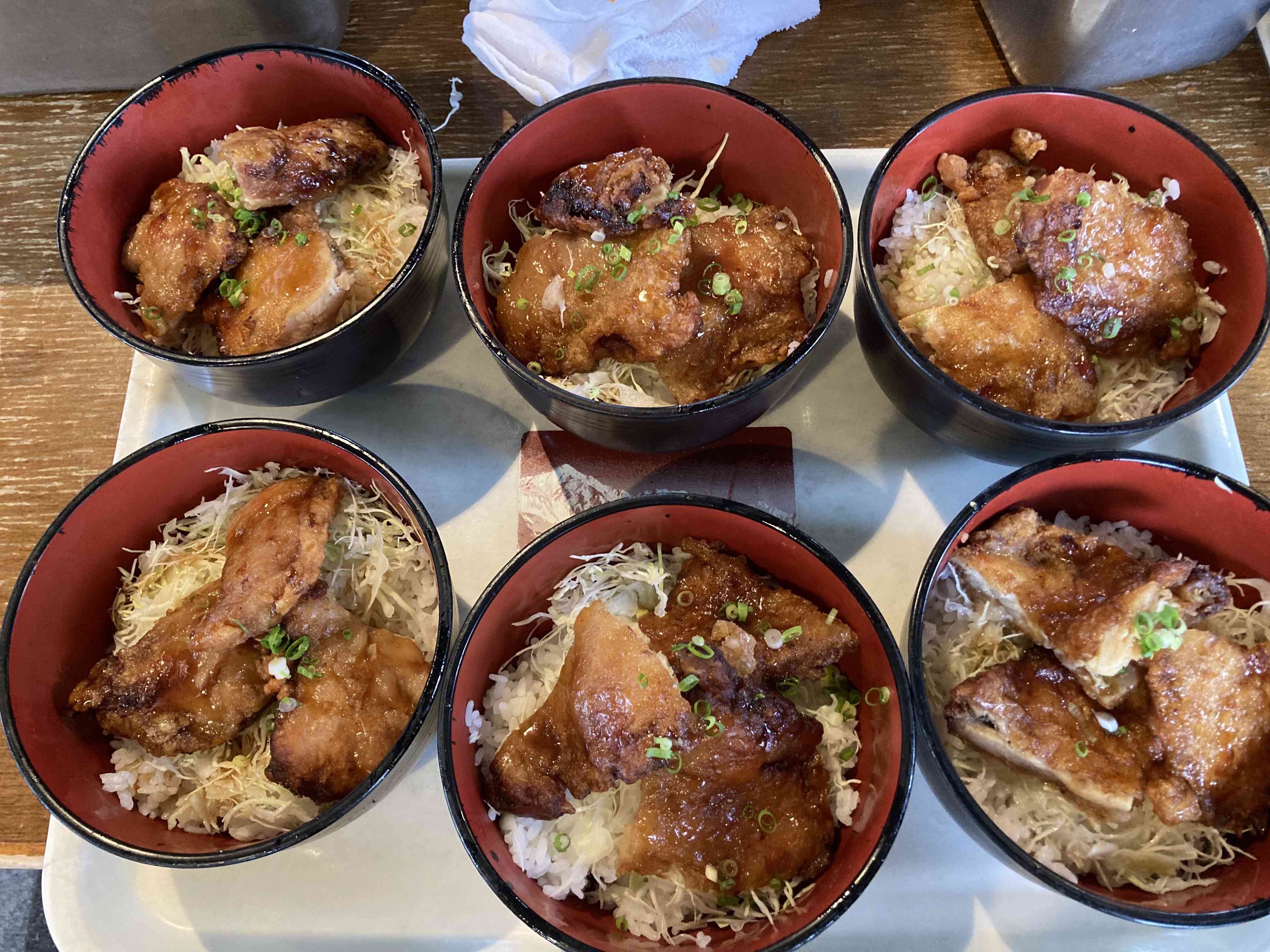下山途中の兎平のレストランで昼食です。メニューは山賊焼丼。