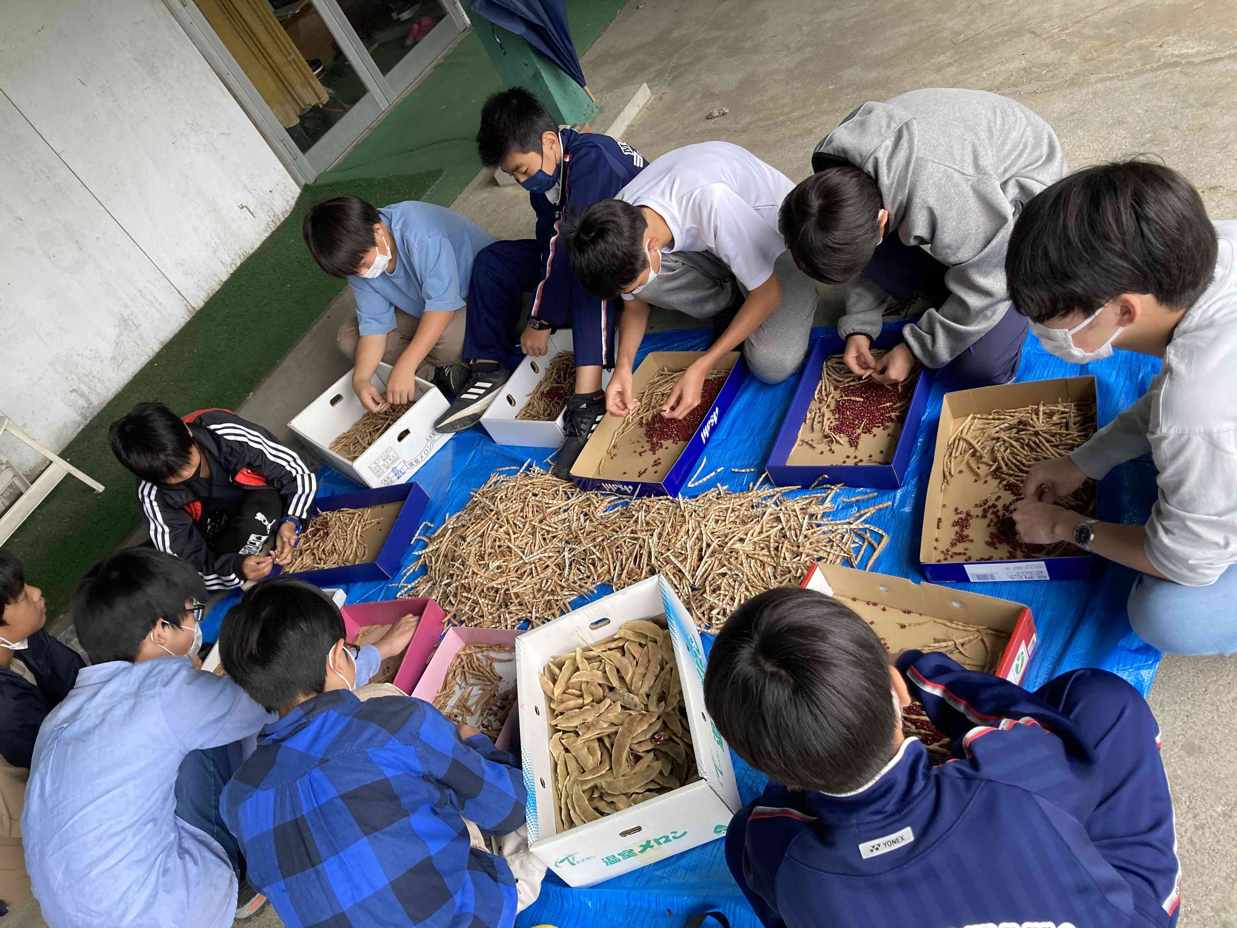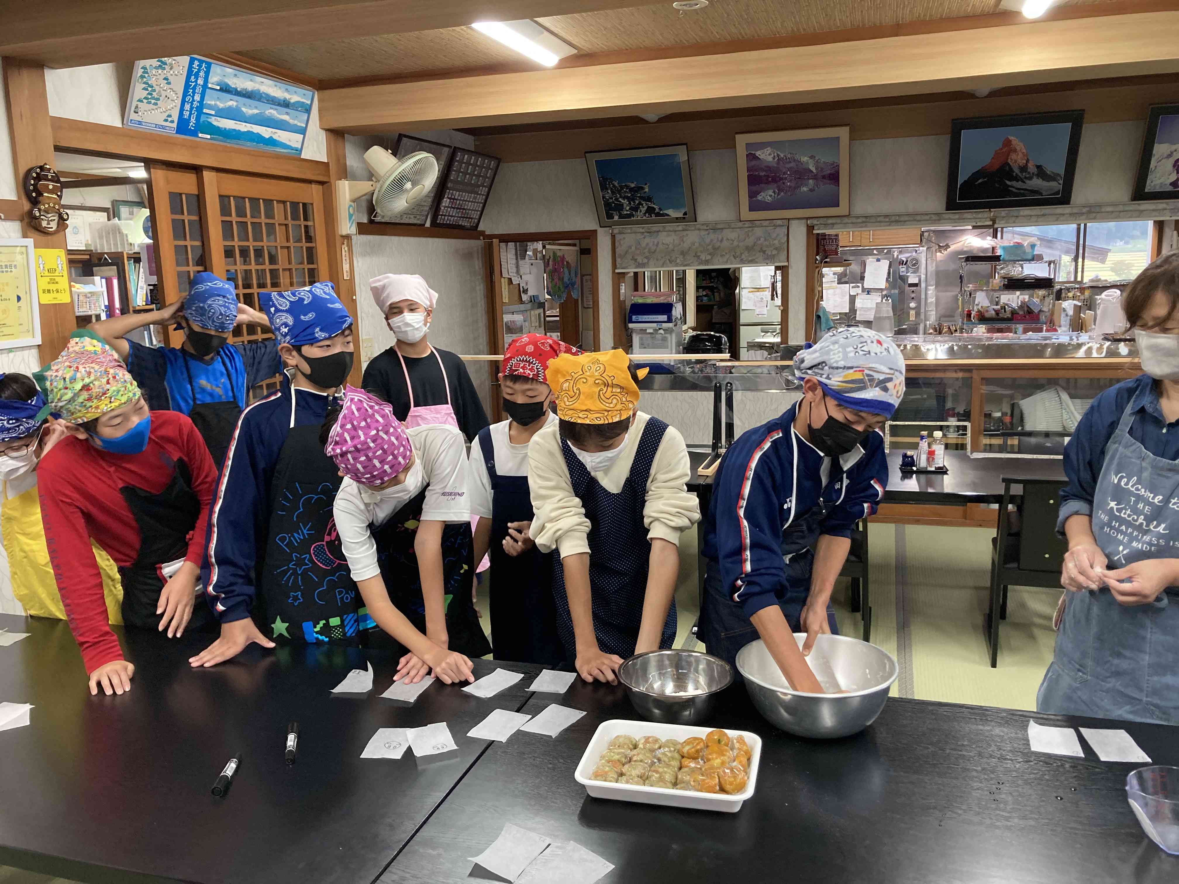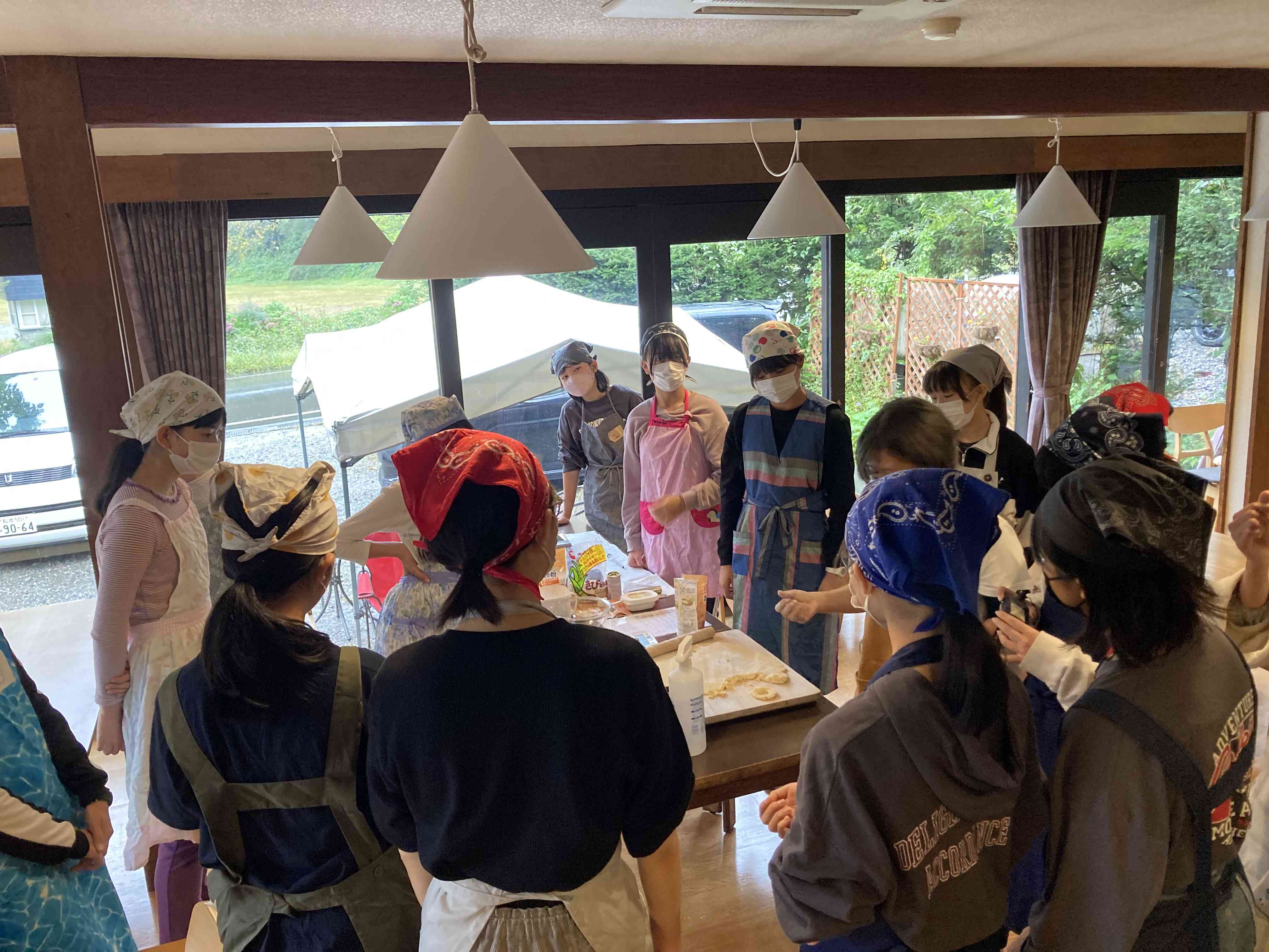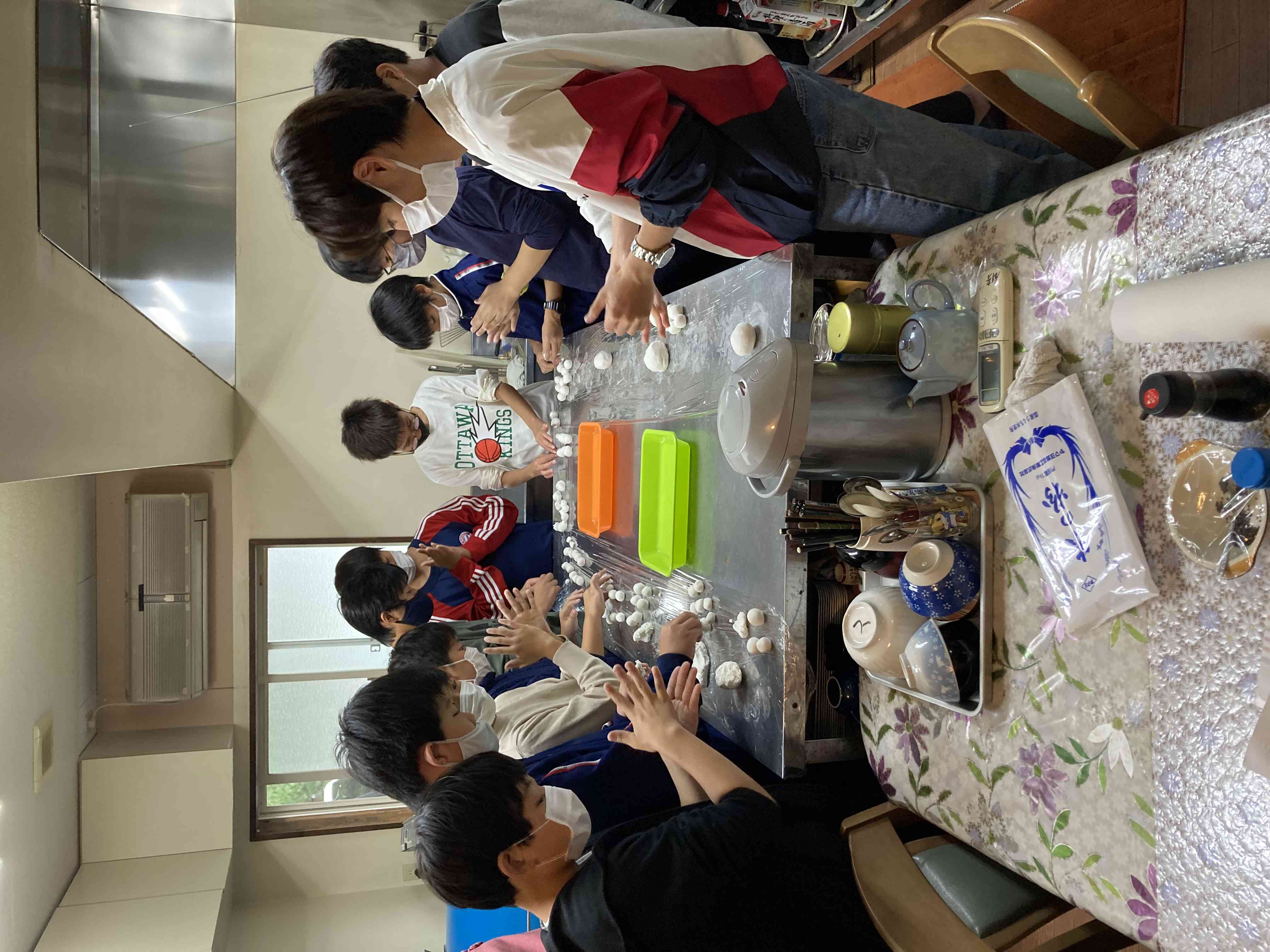 昨日までは、なんとかほぼ予定通りの行程でしたが、今日の稲作体験は雨のため実施できません。新たなメニューとして、午前に男子、午後に女子のドッヂボール大会を実施します。写真は、食づくり体験などの様子です。