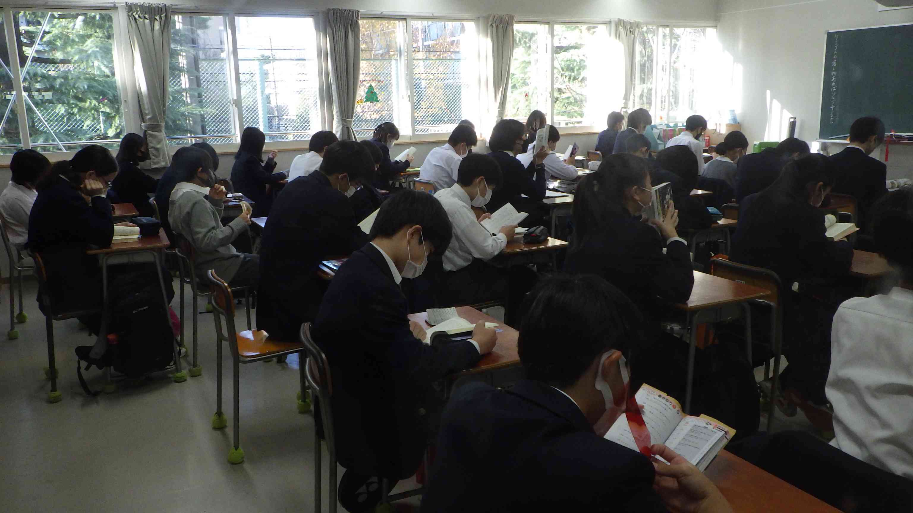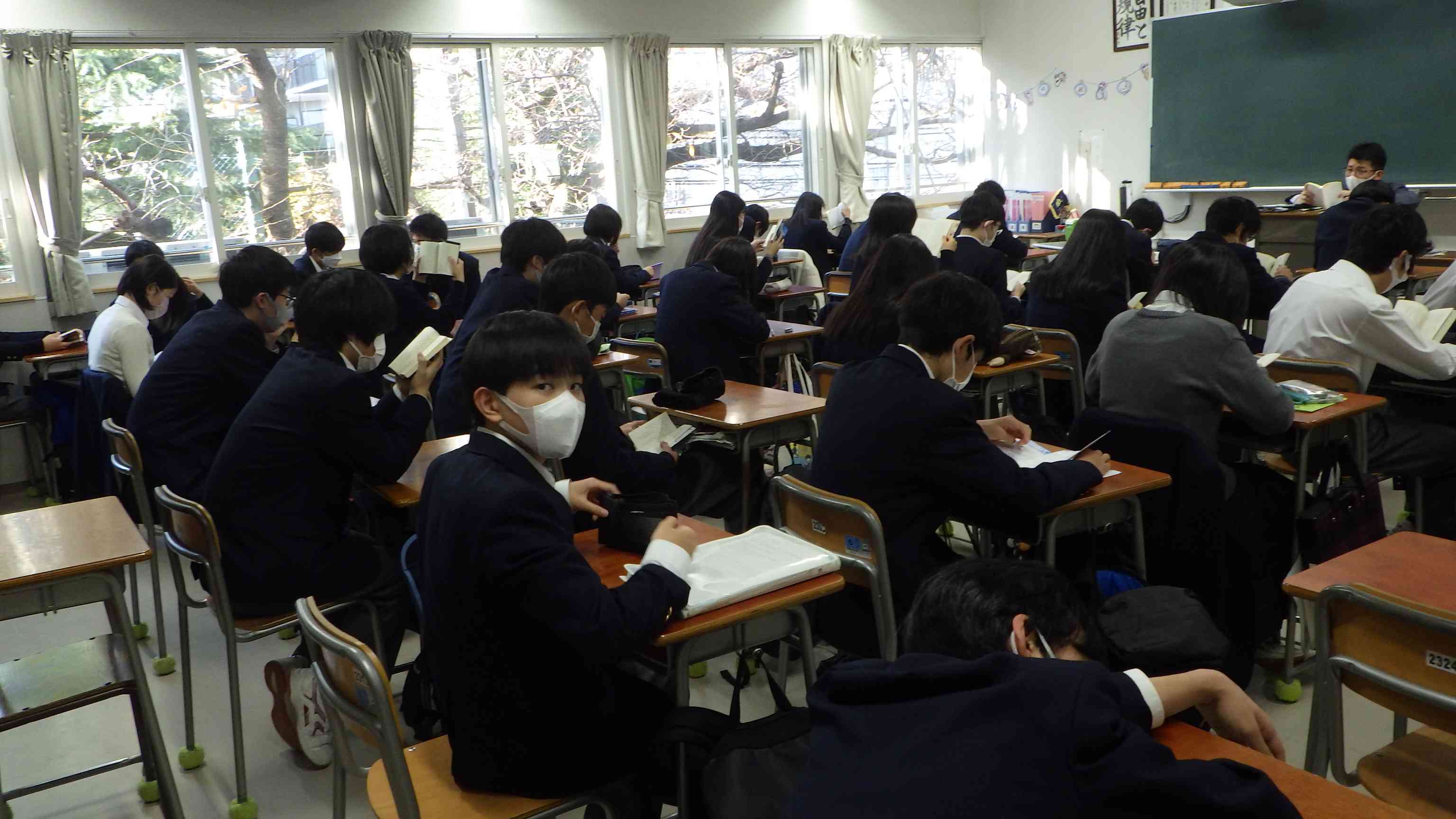 1日の始まりは読書から 朝、予鈴が鳴った後は10分間の読書の時間です。 ほんの10分ですが、とても大事な時間であることを皆さんはご存知でしょうか? 1年間で、ざっと朝10分×平日20日×12カ月で2400分もの時間があります。 この蓄積は後々皆さんの財産になります。 1中は特に図書室の蔵書も充実していますので、ぜひ本をたくさん借りて読んでみましょう。