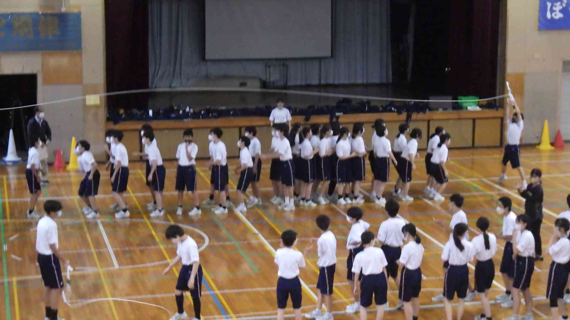 第二学年の学年種目は大縄跳びです。全然跳べないのですが、みんなで取り組んでいることに楽しみを感じているようです。練習を積み重ねて本番ではたくさん跳べるようになるといいですね。コツはみんなで声をそろえて跳ぶことです。頑張りましょう。