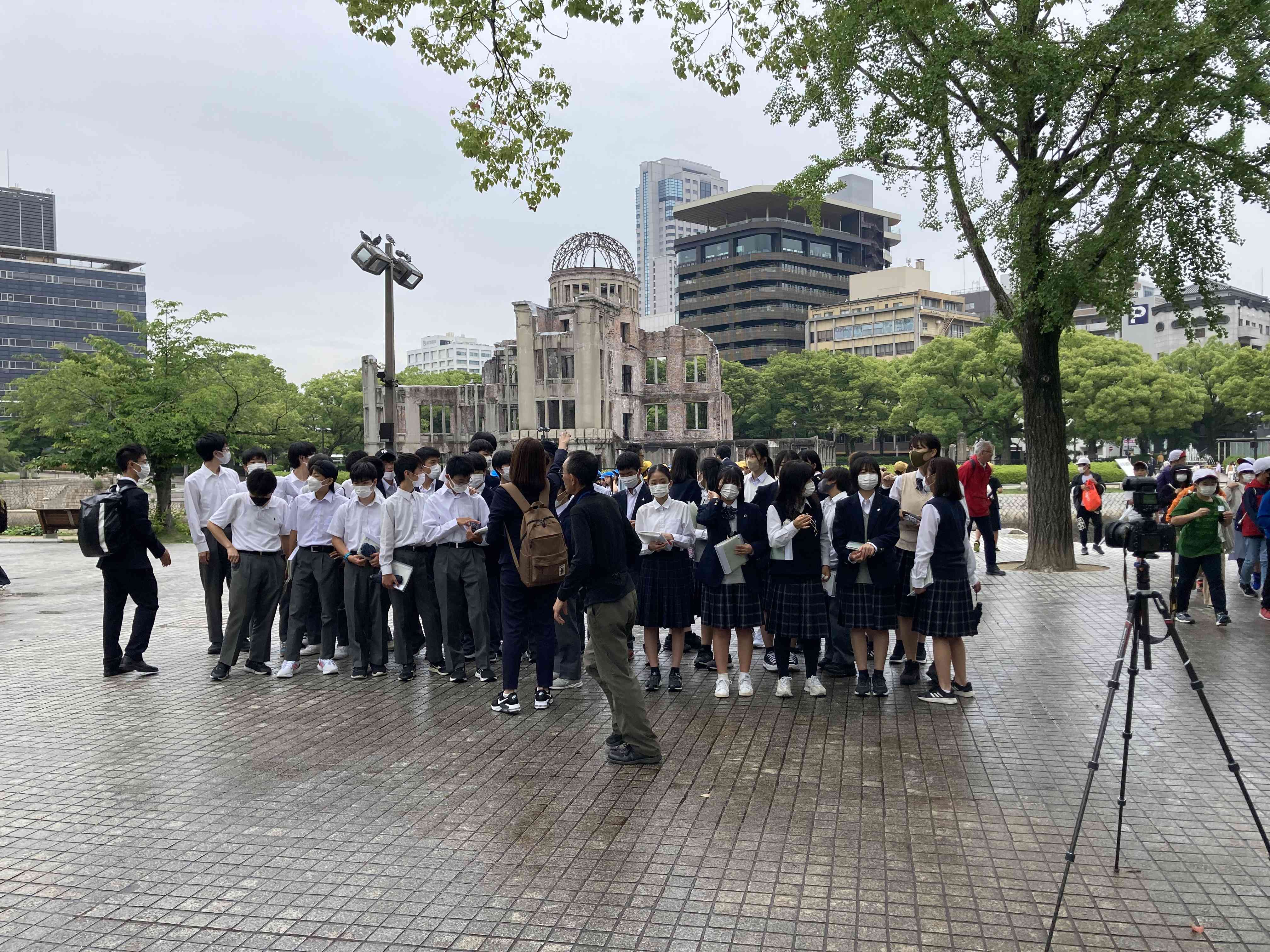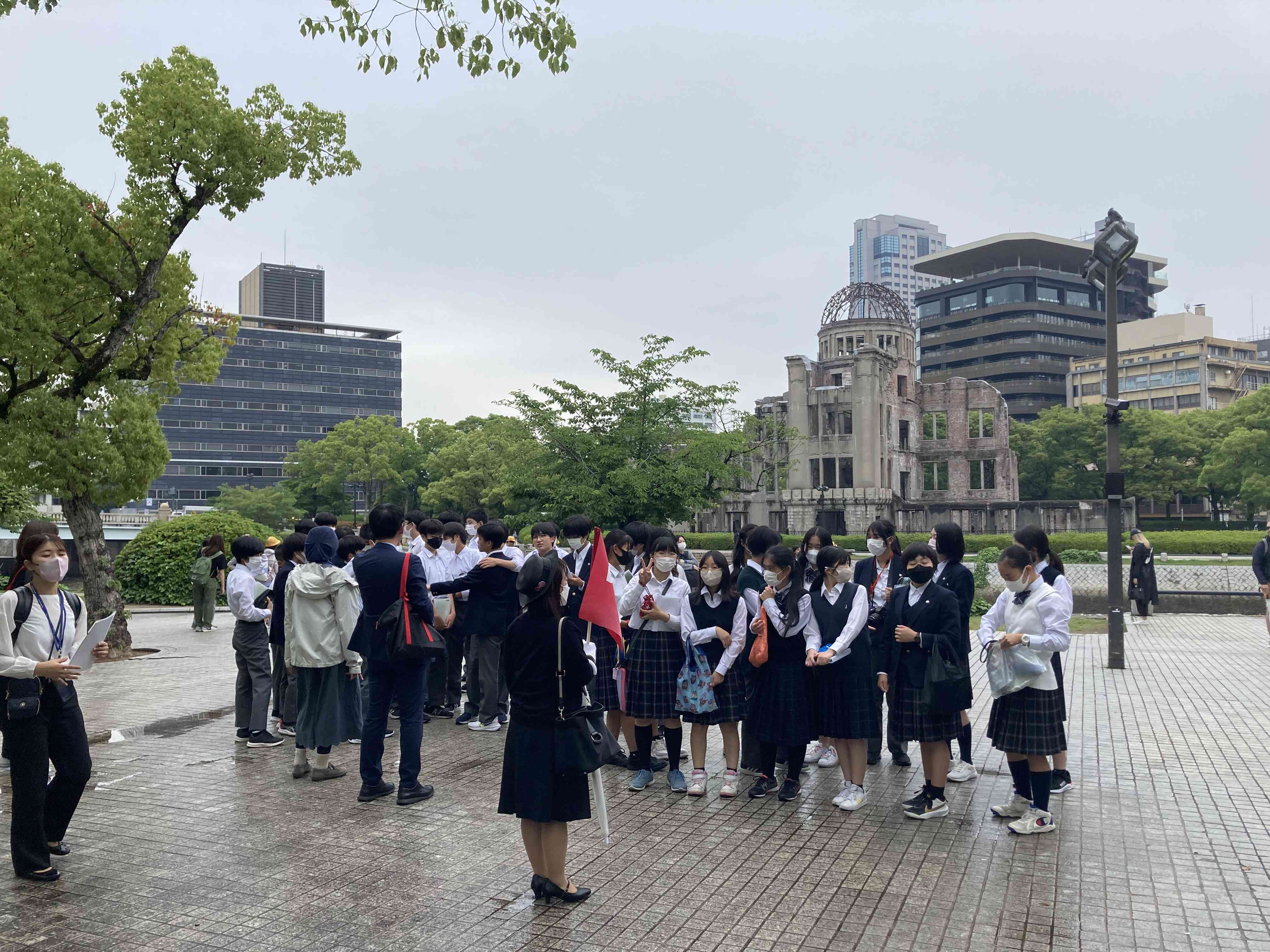 雨が止んでいるので記念撮影を先に済ませました。その後、平和記念資料館で講和を聞きます。