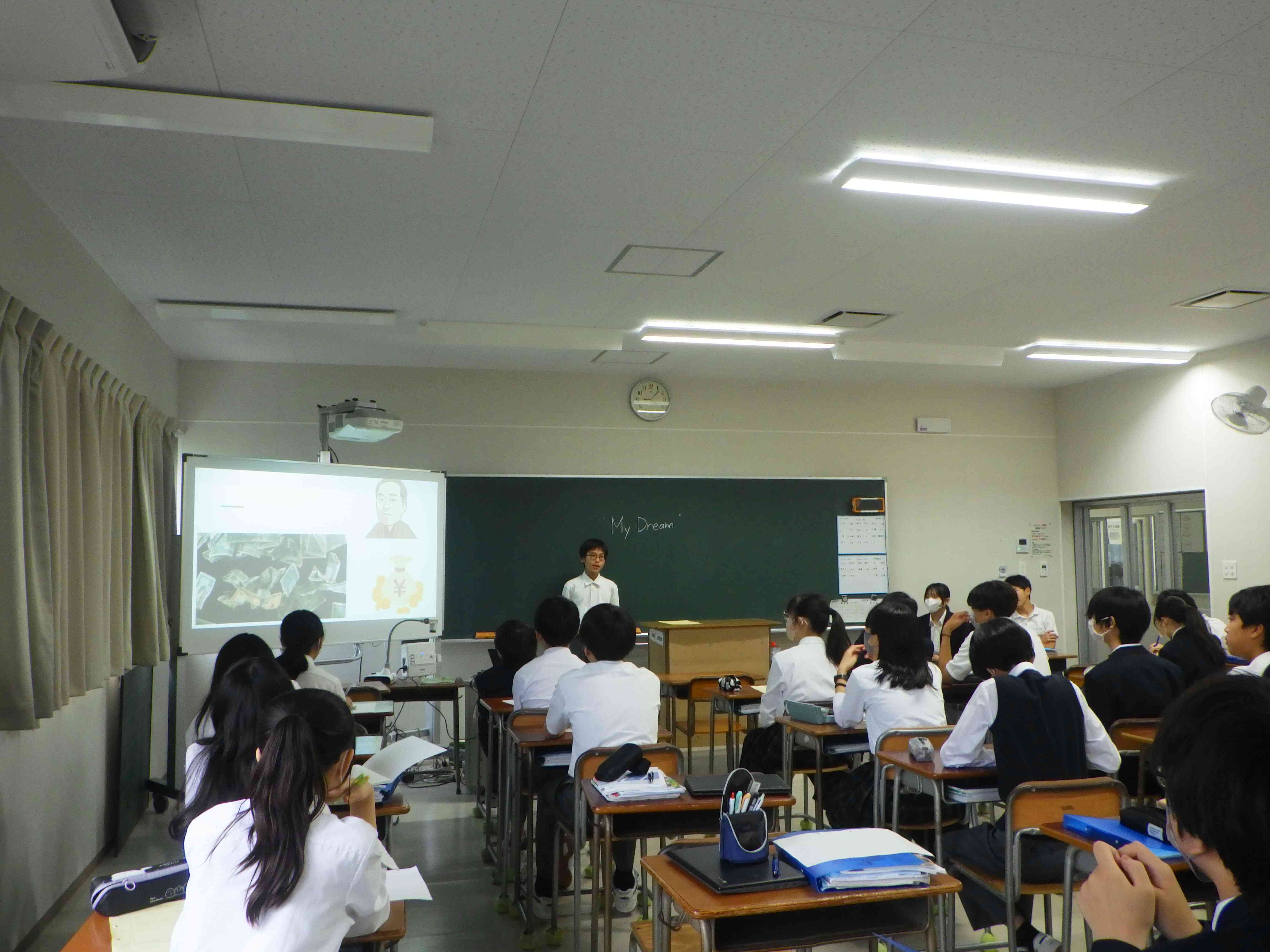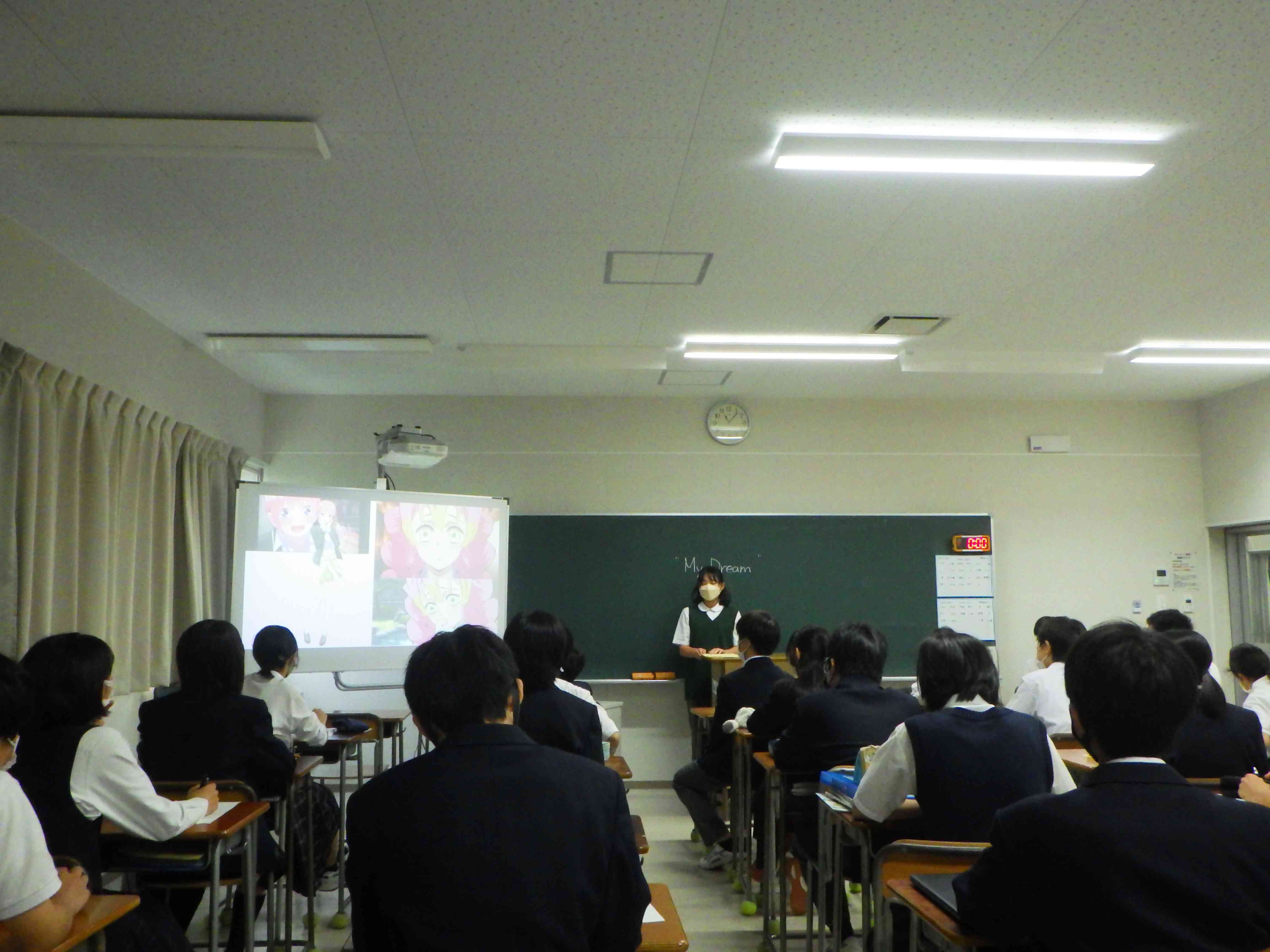 今週2年生の英語の授業でスピーチがありました。 "My Dream"というお題で考え、クラスで発表しました。 原稿を見ずに、アイコンタクトを意識してスピーチをすることを目標に練習してきた結果… ほとんどの生徒が堂々と話し、聞き手に伝わりやすい英語と表現(ジェスチャー、顔の表情など)を用いて発表することができました。 特にこだわっていたのは、スライドです!! 分からない単語があっても写真や動画があるだけで、聞き手が理解しやすくなります。 自分の走っている動画を見せたり、アニメーションを付けたりと見ごたえ+聞きごたえがありました。 次のパフォーマンステストも期待しています!【添付ファイル】