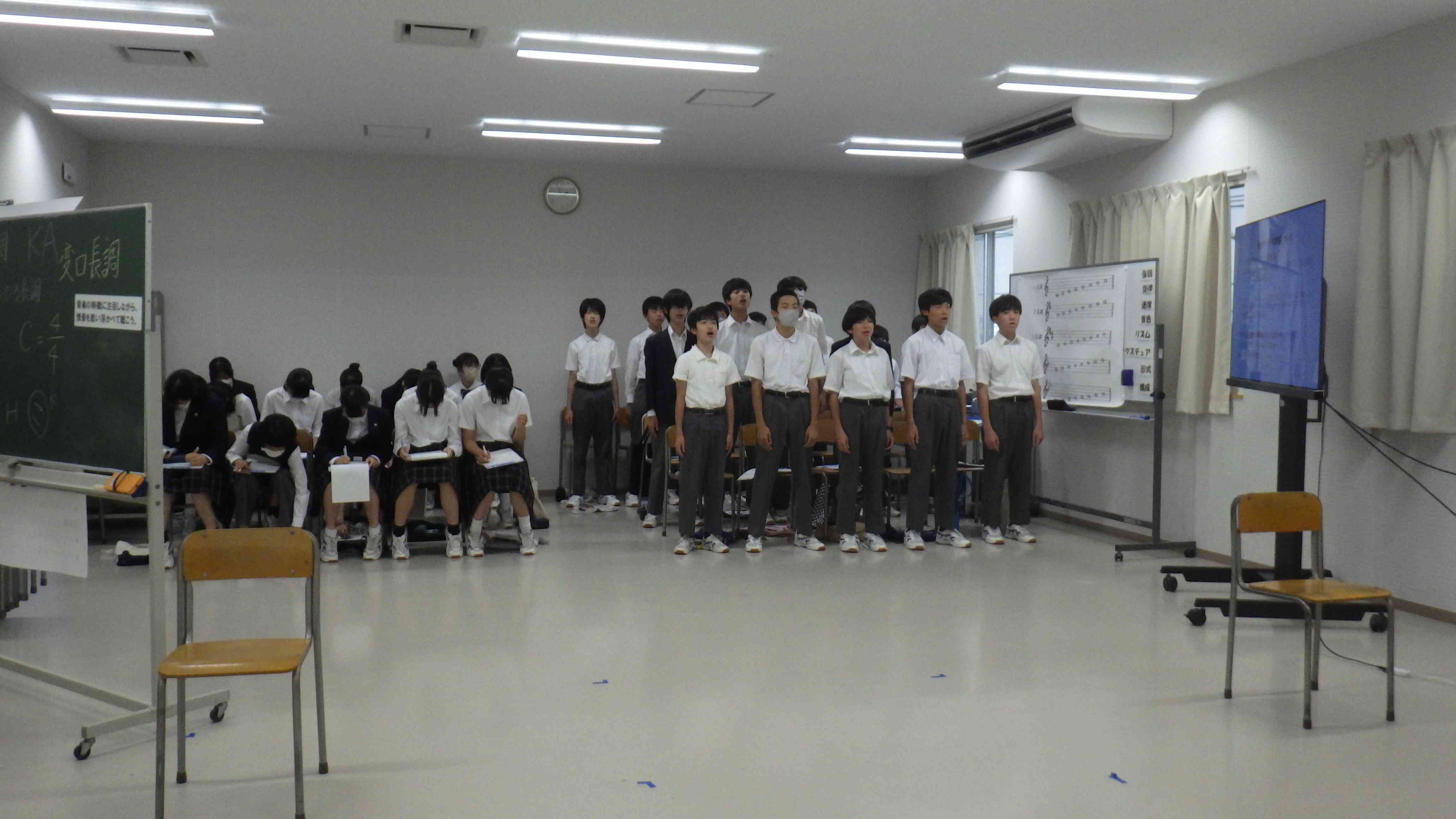 今週、音楽で歌のテストがありました。 “夢の世界を”という曲を暗譜して、先生の前で一人ずつ発表しました。 実技テストはどの教科も緊張する生徒たちですが、すべての活動に手を抜かないのが一中生です。 休み時間にきれいな歌声を廊下中に響かせ、練習する子が何名も見られました。 一生懸命努力すると、結果はついてくるものです。 今回の結果に期待しましょう!