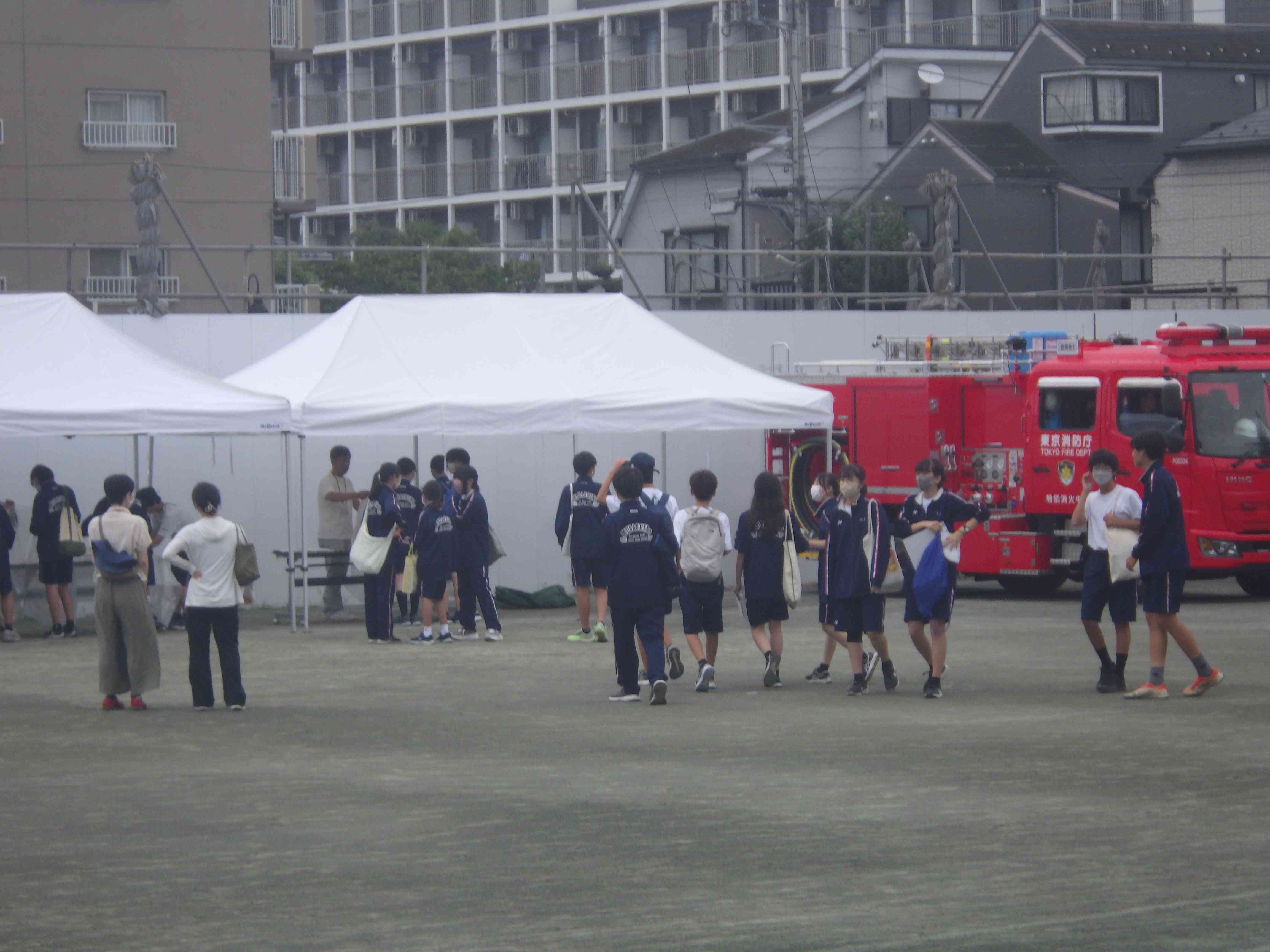 本日は学校公開がありました。 2年生が地域防災訓練に参加しました。 午後には小学生の1中授業体験、部活動体験があります。