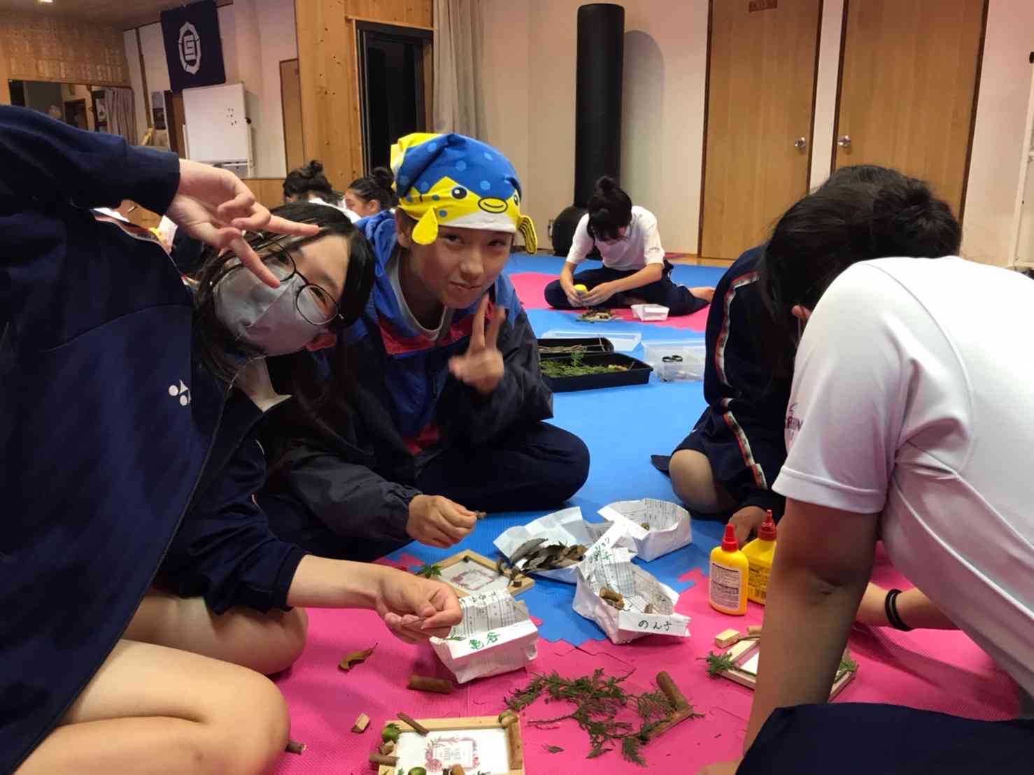 ものつくり体験や夕食の様子です。リスの小屋、ユースビラ白馬とおみ、パルズイン雷鳥、久平荘、山万旅館。