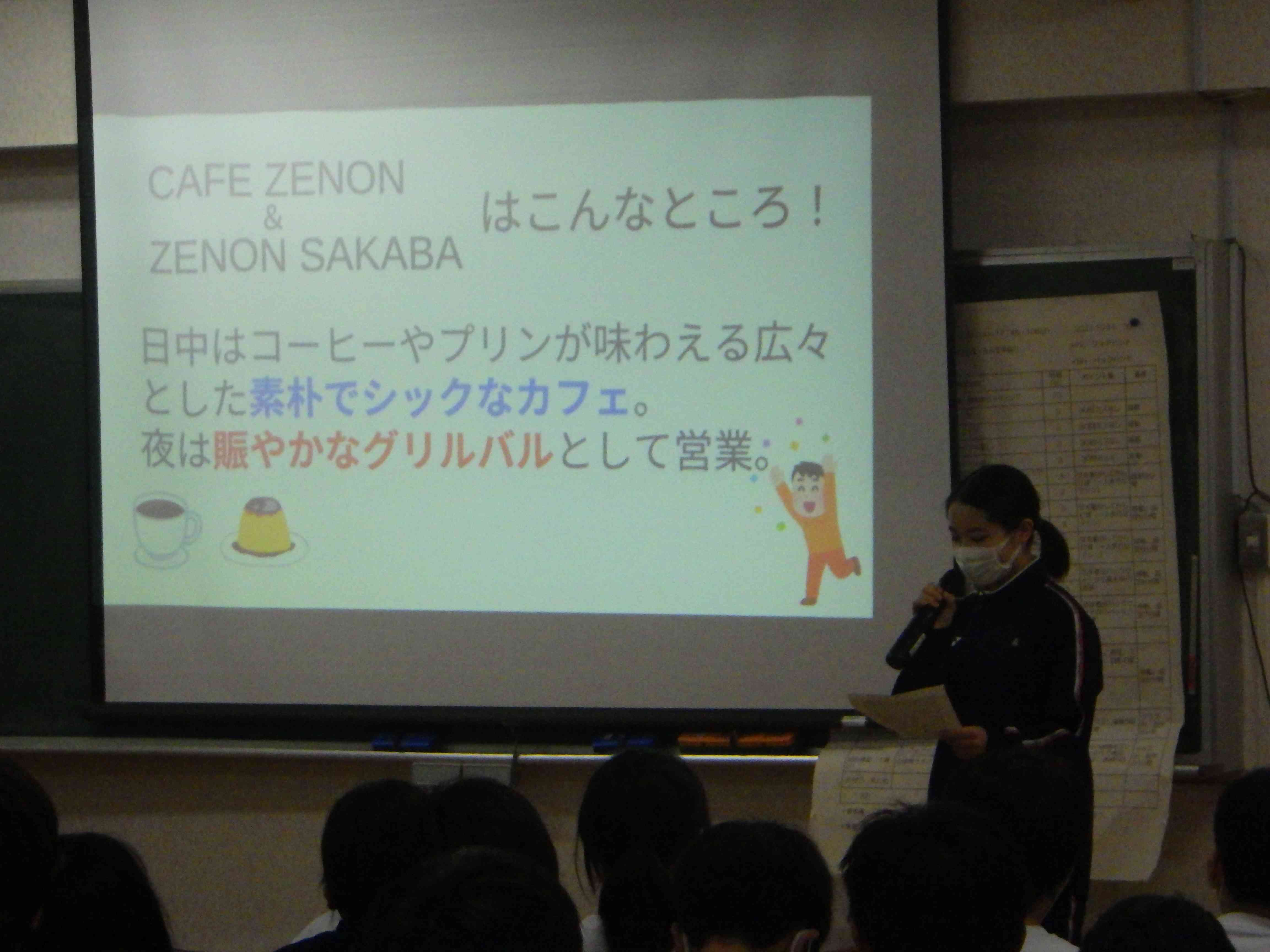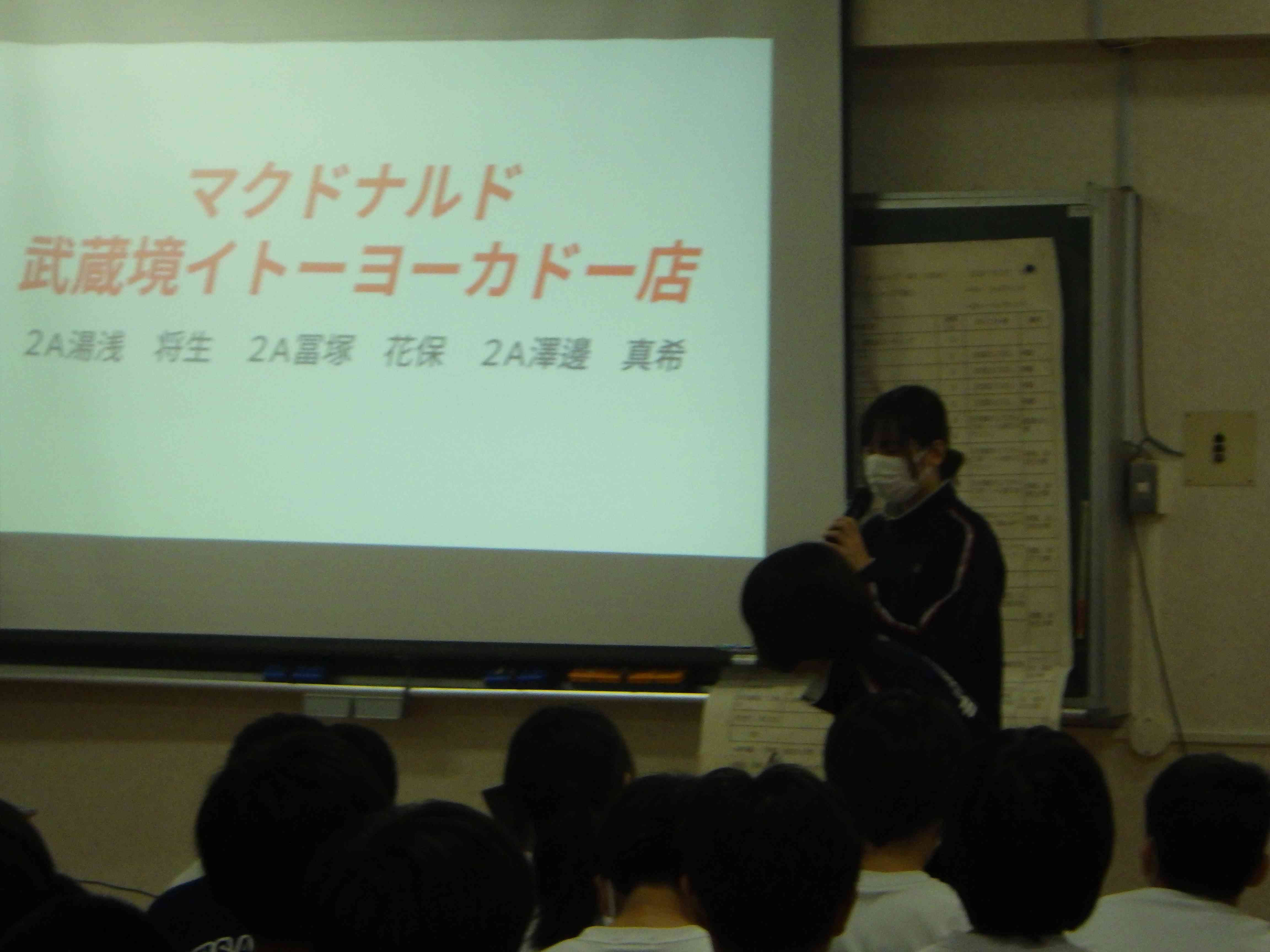 9月に行われた職場体験について、事後発表を行いました。 3日間というスケジュールでしたが、たくさんのことを学んできました。最初は大変だったけど、最後は楽しかったと発表していましたが、働く大変さも十分に理解できていたようです。