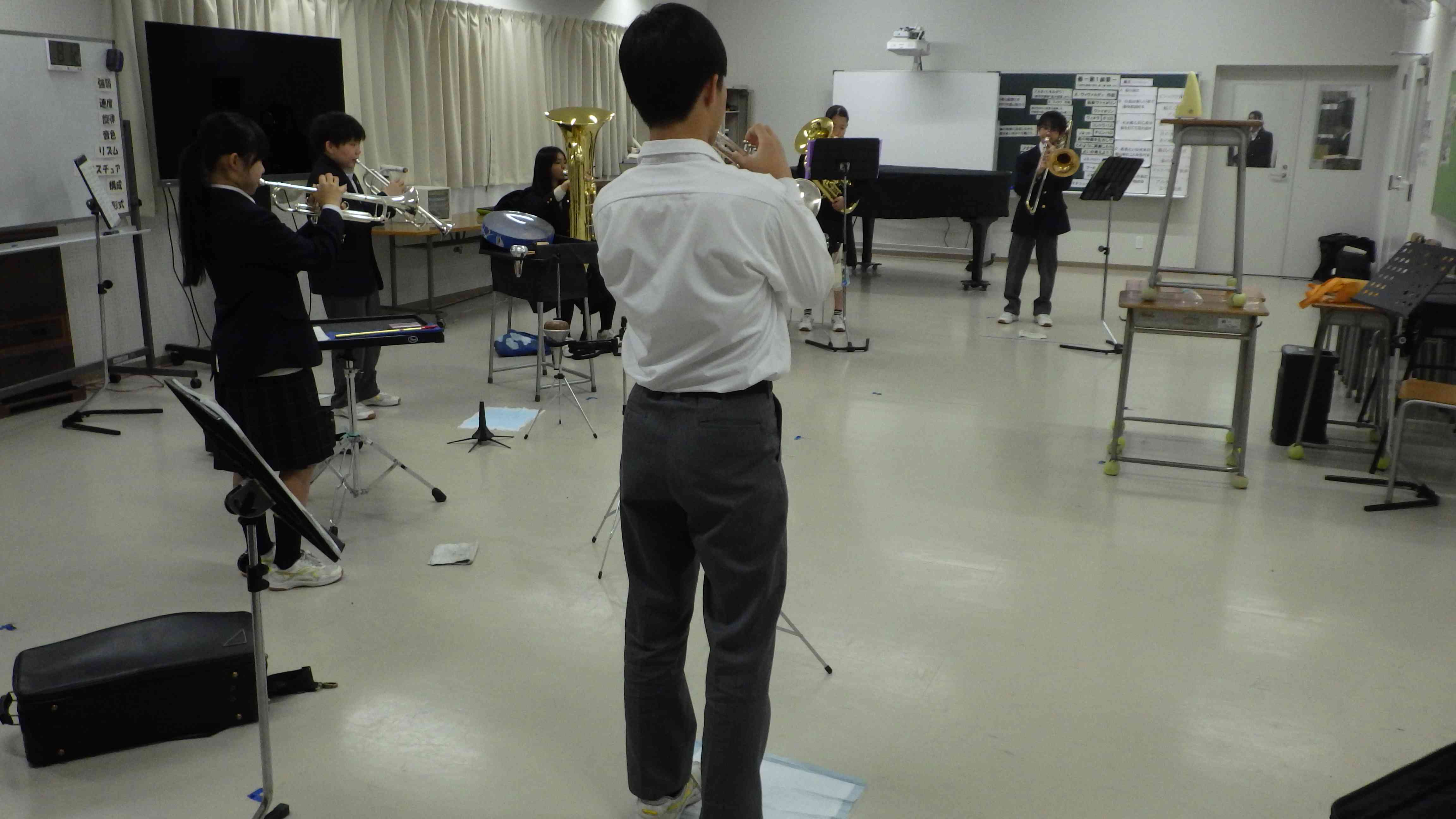 今週日曜日「府中の森芸術劇場」で行われる【東京都中学校アンサンブルコンテスト】にむけて吹奏楽部の朝練習は真剣そのものです。 一中の出番は13:08からとなっています。 本番当日まであと少し。 吹部、fight!!