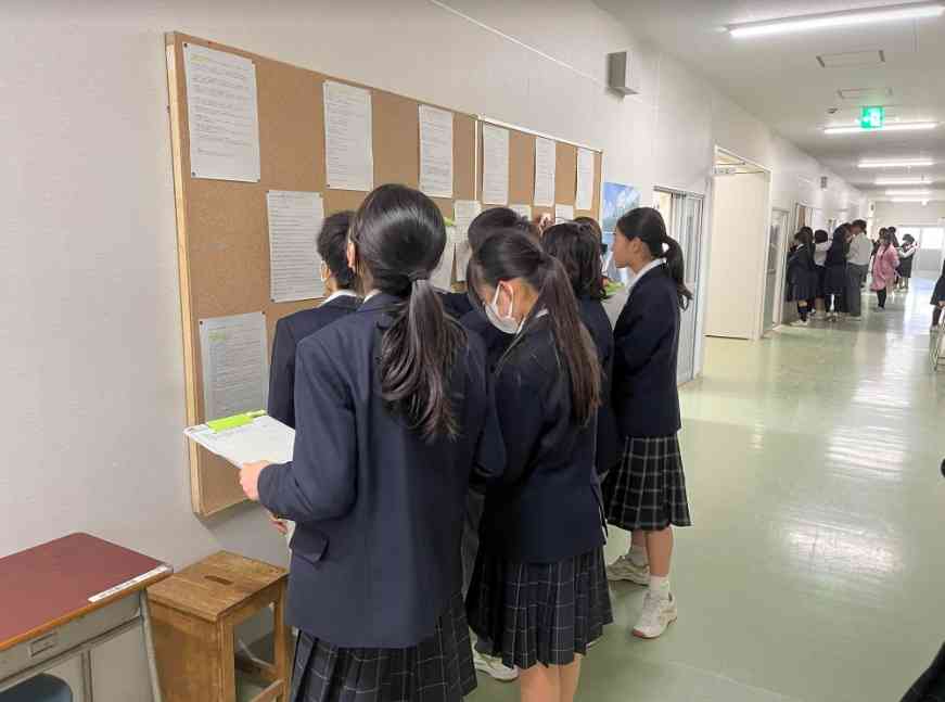 第1学年では、本日の6校時に、学年単位で職業調べレポートを見合い、感想を書いてまとめる活動を行いました。 同級生が仕上げたレポートを懸命に読む生徒たち。 各クラスを周り、掲示されているレポートを読んでいくのですが、よく集中して取り組めており、成長を感じました。 「3学期は第2学年0学期」 かっこいい2年生になれるよう、引き続き頑張っていきましょう!