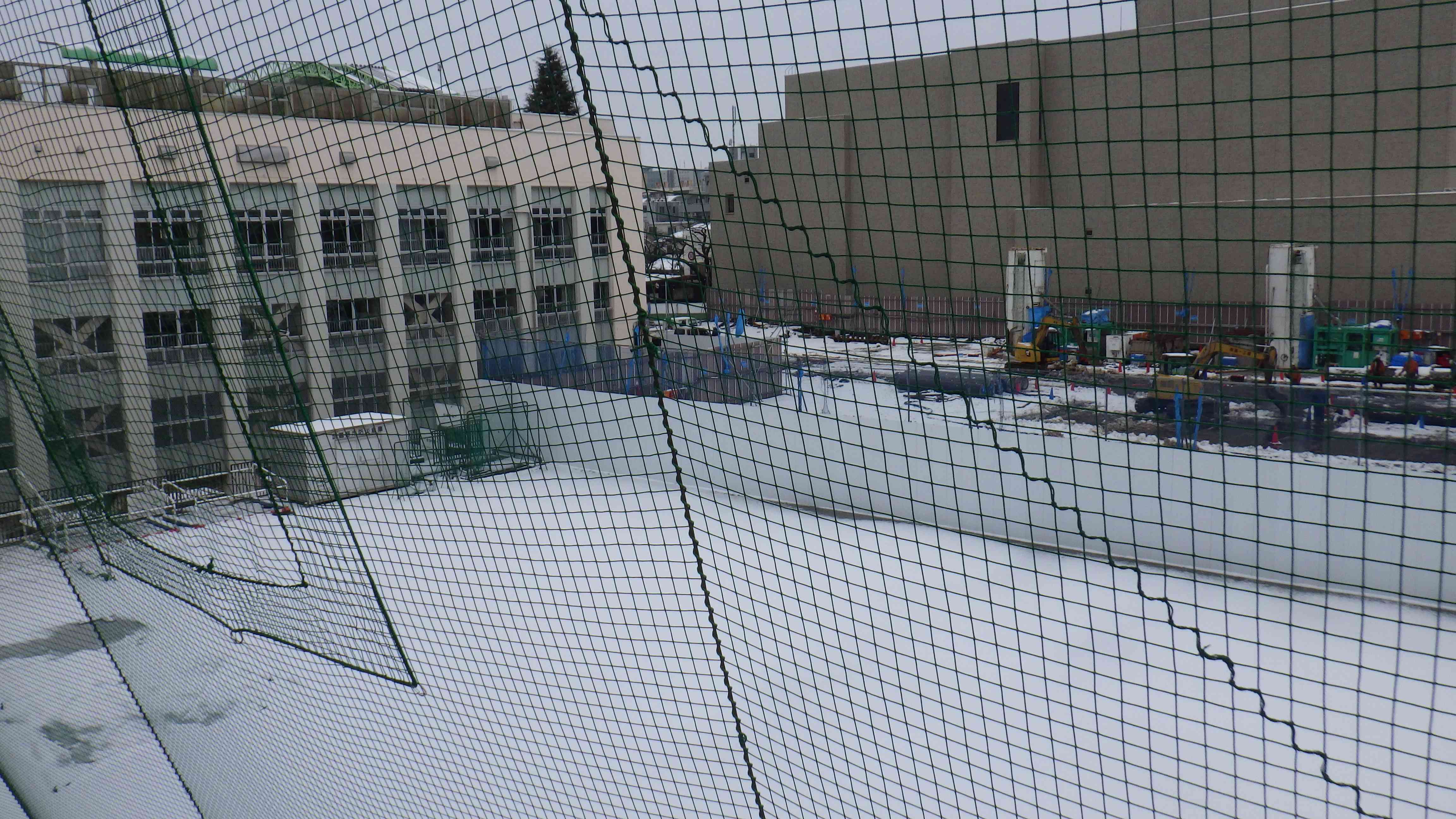 3階から校庭をみてみると・・・ なかなかいい感じの雪景色でした。 新校舎の工事を行う姿を見て 「雪でも工事ってやるんだ。大変だなぁ」 と呟いている生徒がいました。 ホント雪の中、ご苦労様です。 今朝通勤を頑張った私たち大人も、ご苦労様です。 元気に登校してくれた生徒たち、転倒しなくてよかった。 これから数日間は足元に注意が必要になりますね。 雪が残っているか心配で休み時間に校庭をのぞいている一中生、なんとも可愛らしいです!【添付ファイル】
