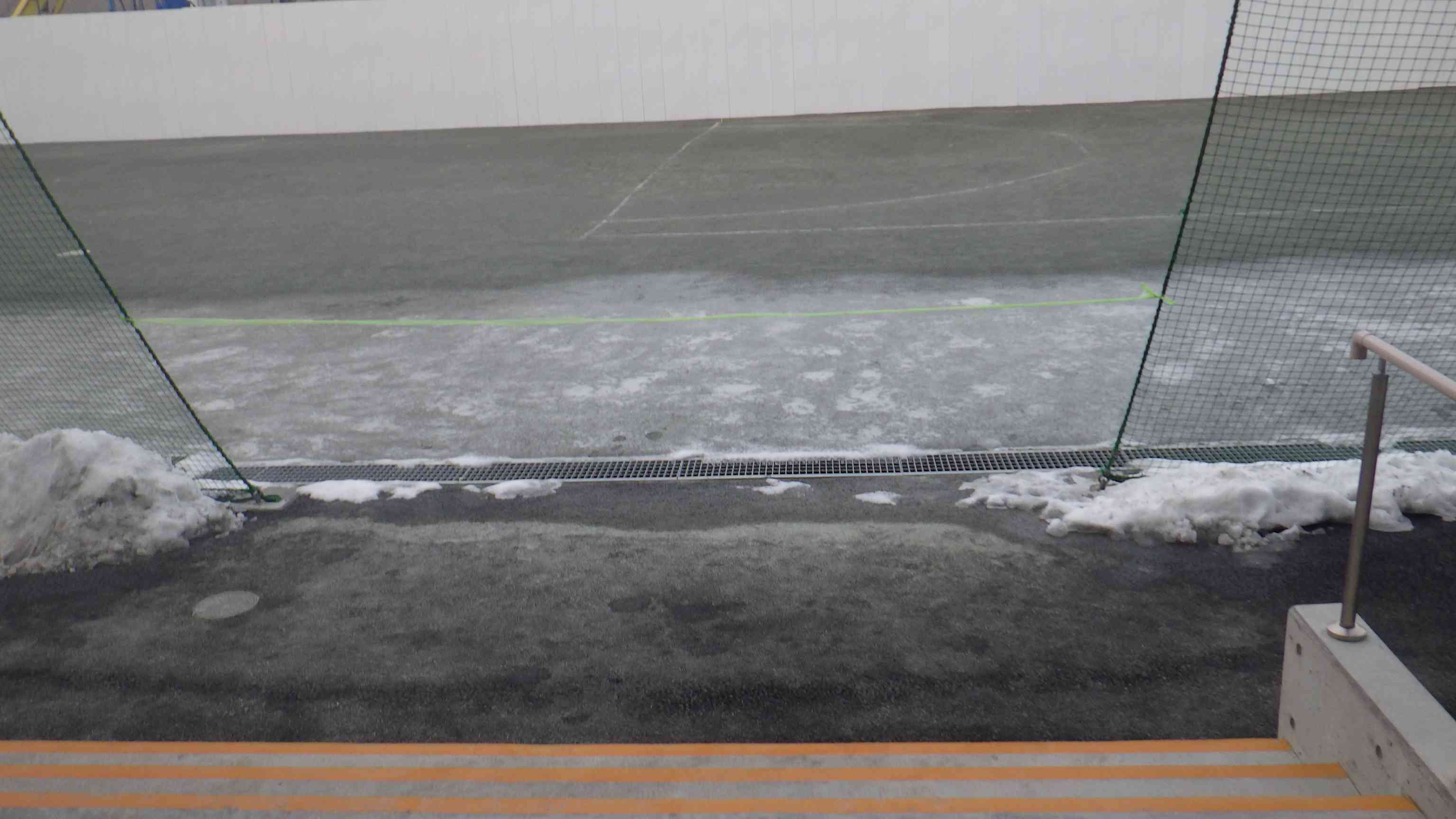 今週降った雪ですが、未だに残っています。 体育の授業や外部活動に影響が出ています。 今朝は写真のように氷が張っていました。 来週はとけるといいですね。