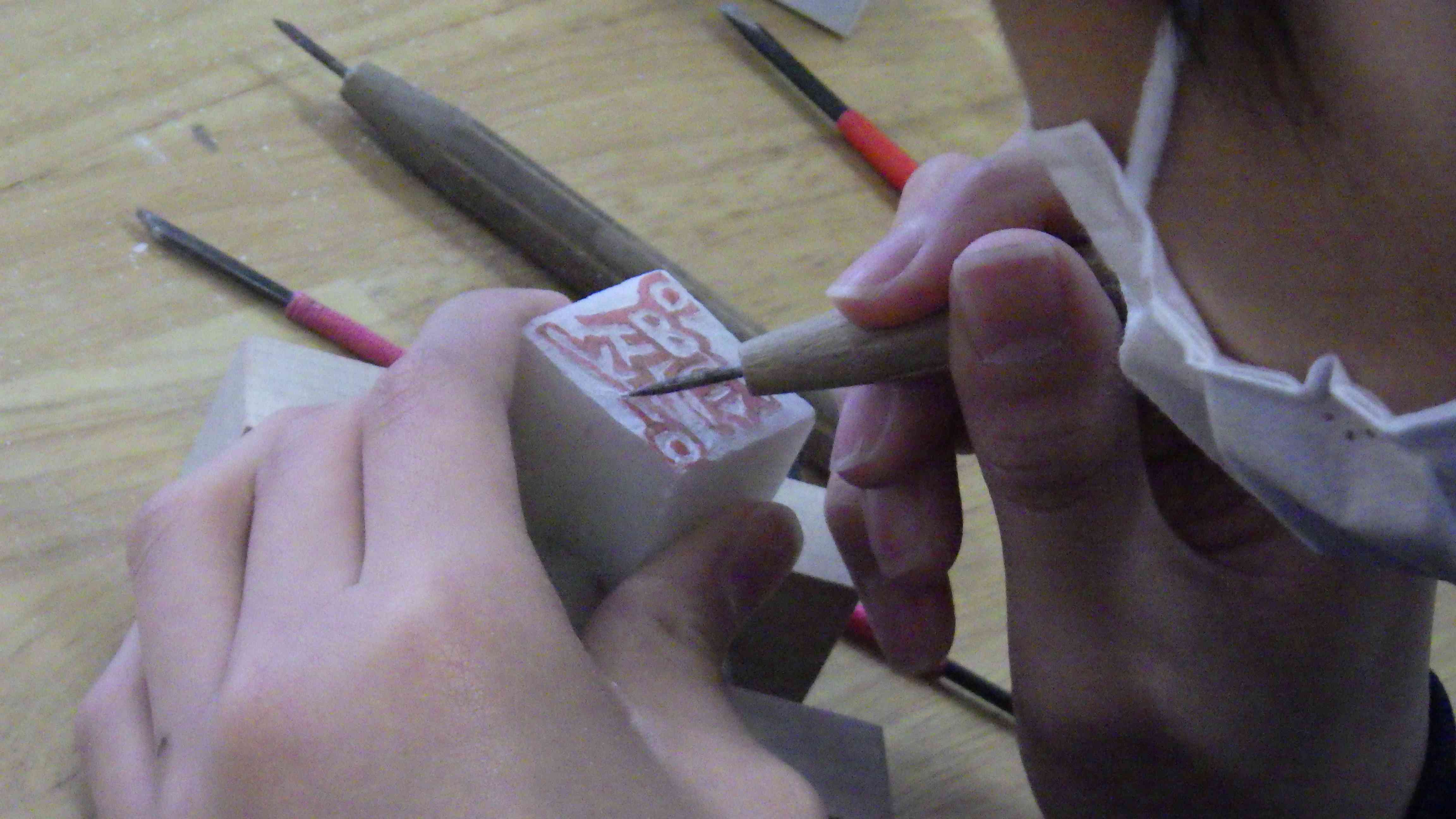 義務教育最後の美術の課題は「てん刻」。 2学期末から取り組んでいますが、入試と重なる日も多く、作業進度は個々で違います。 最後の課題が未完成で終わらないように、というより「いい作品にしたい!」、という気持ちでみんな真剣に石を彫っています。
